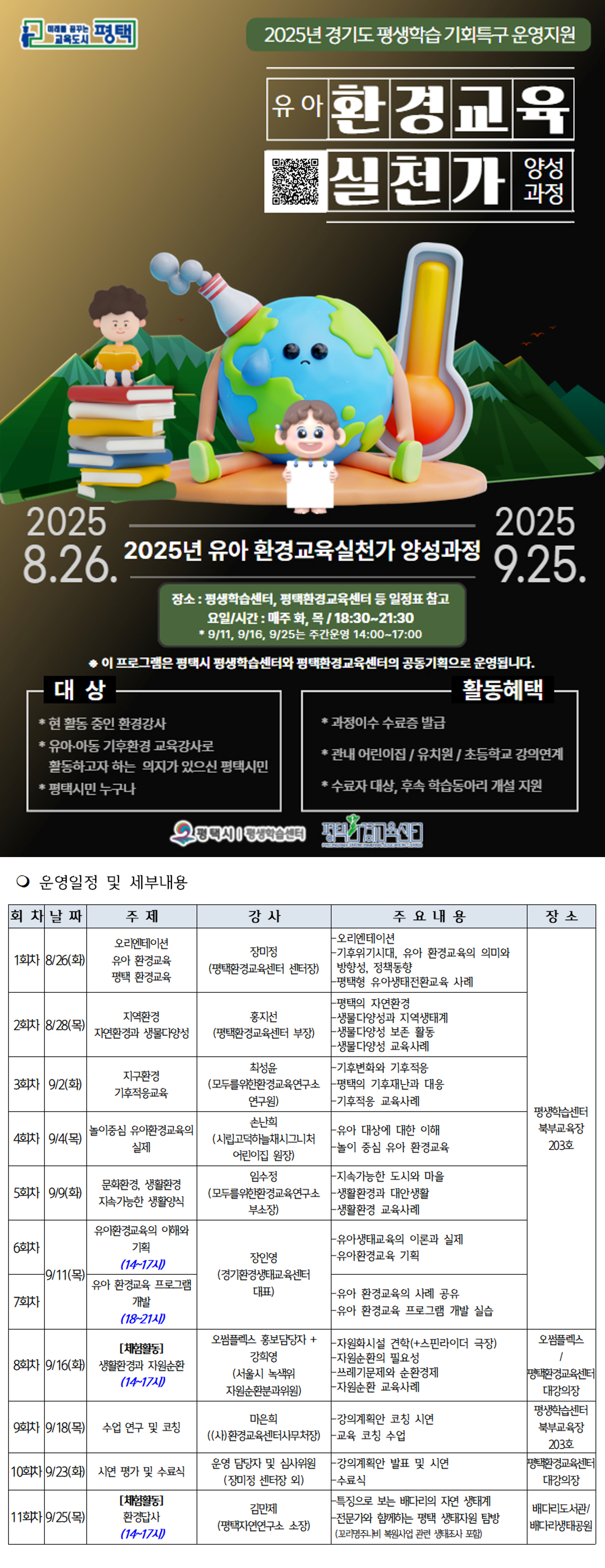 교육 신청방법: 평택시 평생학습센터 홈페이지 및 포스터내 QR을 통해 이동 가능
