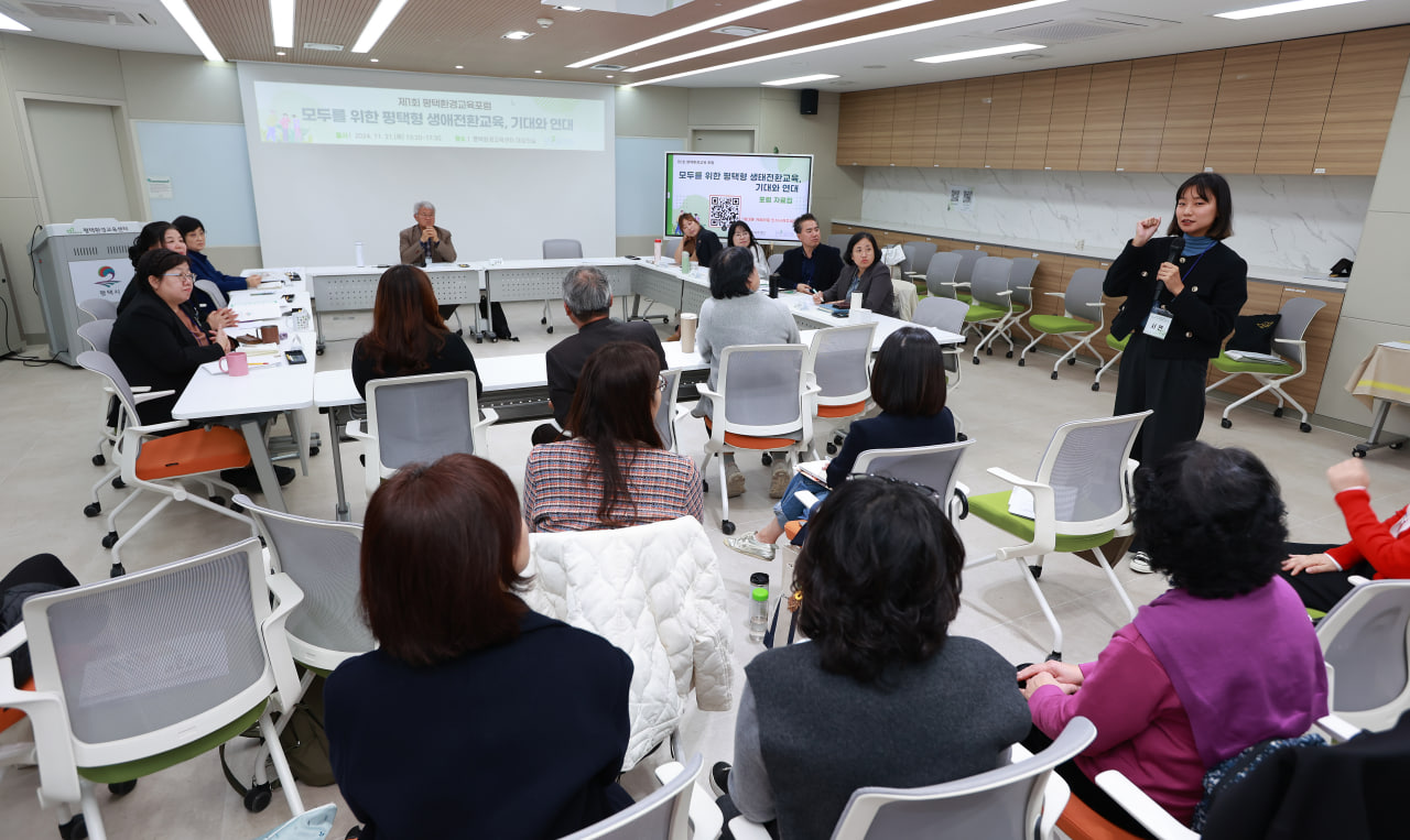 지난 2024년 11월 21일, 평택시와 평택시환경교육센터가 주최한 <제1회 평택환경교육포럼>이 "모두를 위한 평택형 생태전환교육, 기대와 연대"를 주제로 평택환경교육센터 대강당에서 열렸습니다. 한국환경교육네트워크, 경기환경교육센터, (사)환경교육센터를 비롯해 외부 초청인사들과 평택시 관내 환경교육기관의 관계자들과 시민, 환경강사 등 평택의 환경교육 여러 이해당사자 60여명이 참여하여 열띤 토론과 화합의 장에 함께 했습니다.